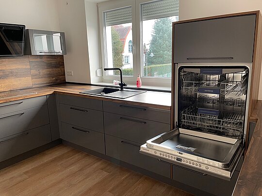 Die Küche und die Badmöbel können für 5.000,00 Euro VB vom Vormiete übernommen werden.